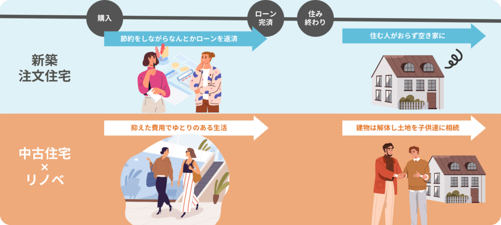 新築より価格を抑えながら、見た目・設備・断熱性能まで自分好みにカスタマイズできるため、コストと満足度のバランスがもっとも高い住まい方として支持されています。