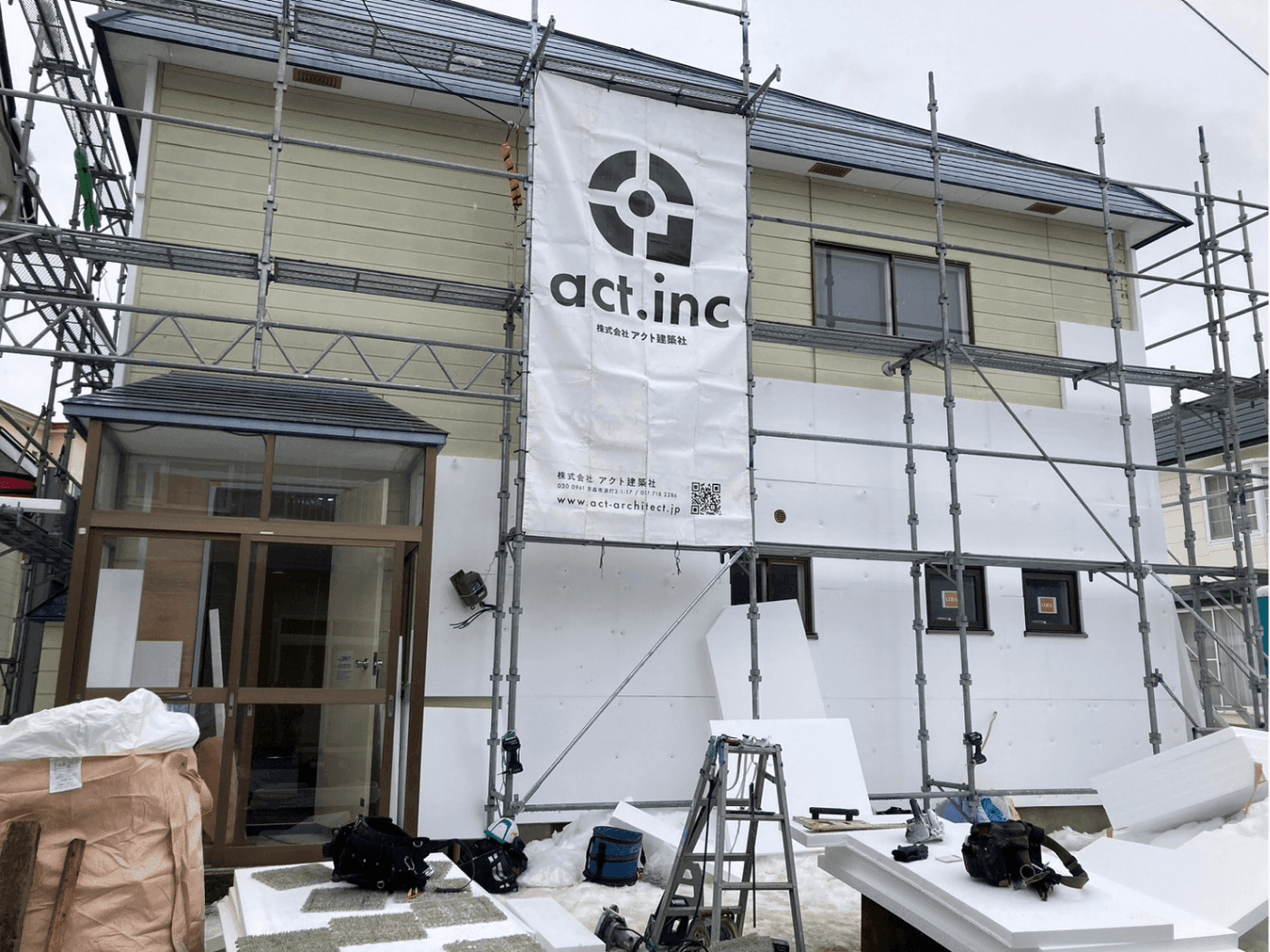 既存の外壁の上から断熱材を施工し、仕上げまでを一体で行う外張り断熱工法です。